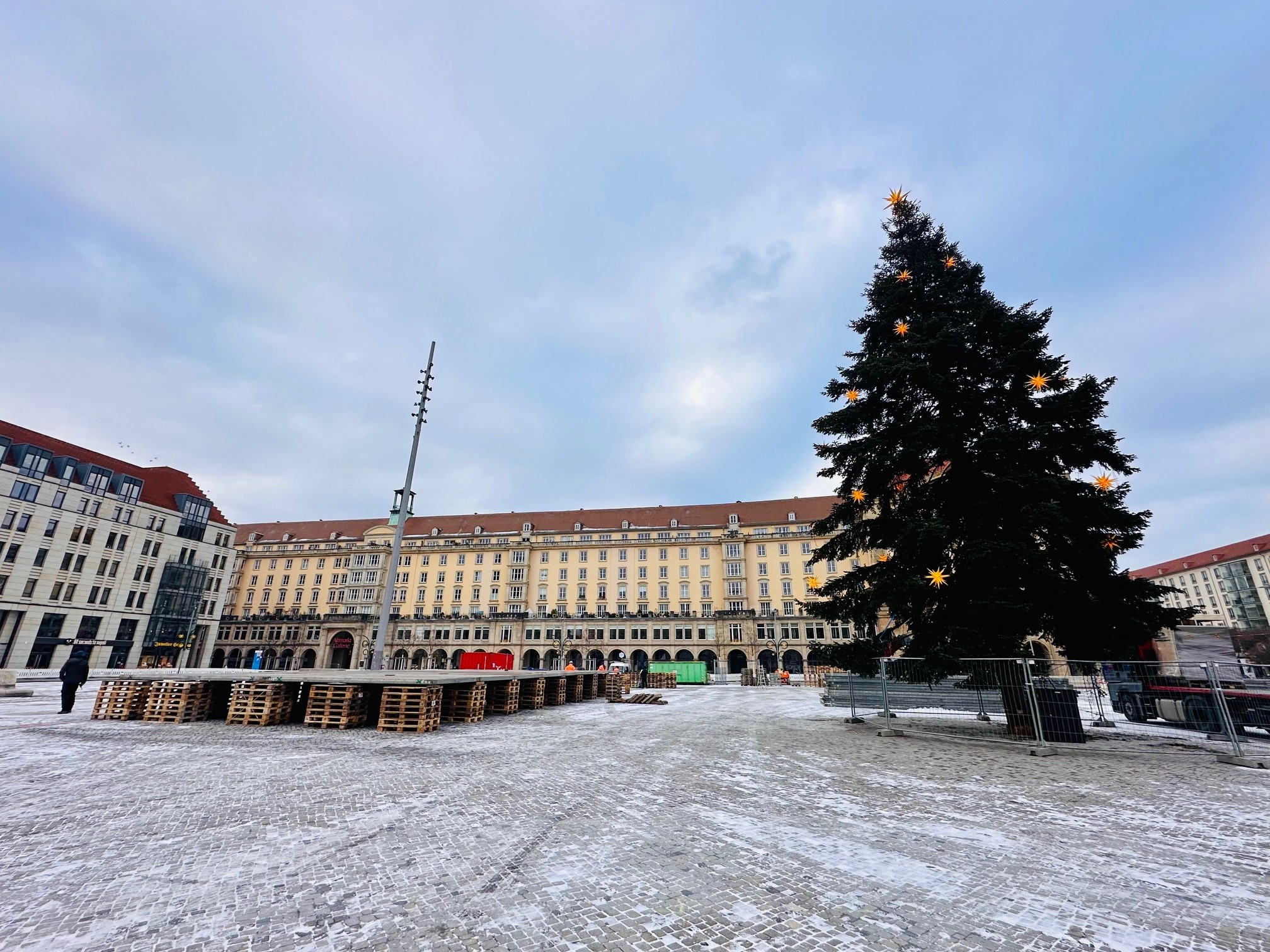 Der Striezelmarkt ist noch nicht ganz weg, aber wir sind schon da. Die Aufbauarbeiten wir das 3. Winterfest haben begonnen.